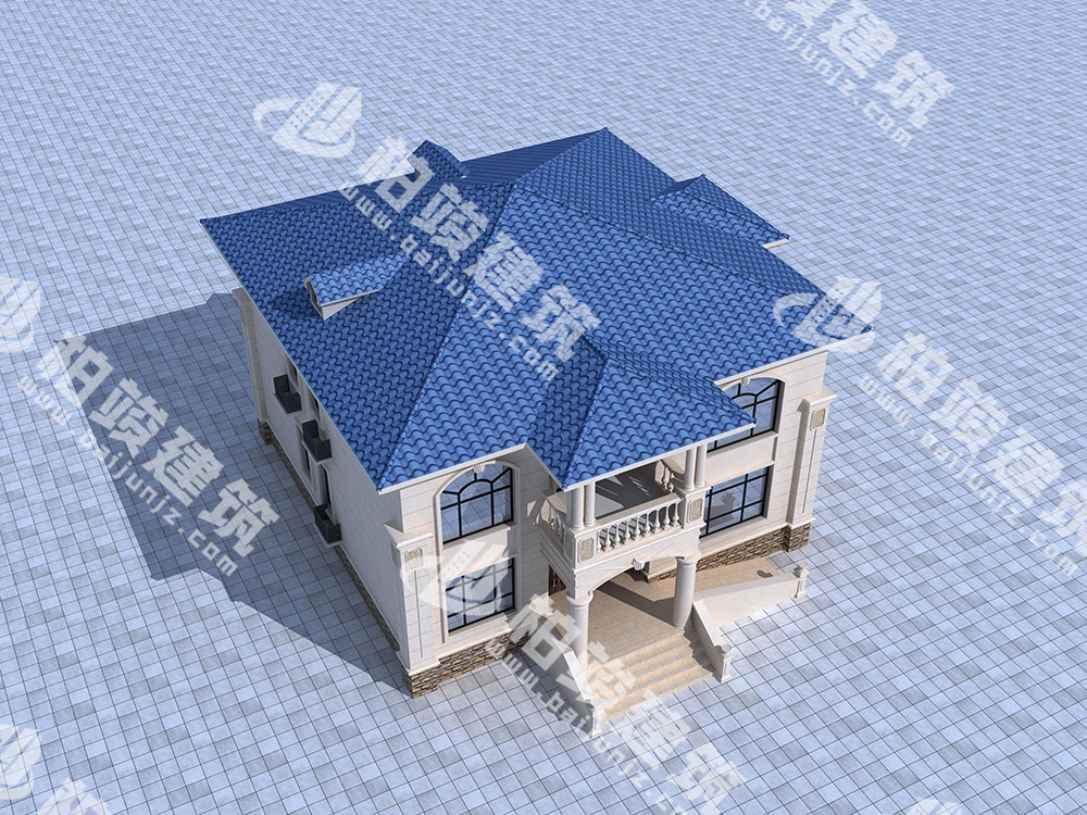 屋顶造型:蓝色釉面瓷瓦铺设坡形屋顶,饱满色泽如碧波流淌